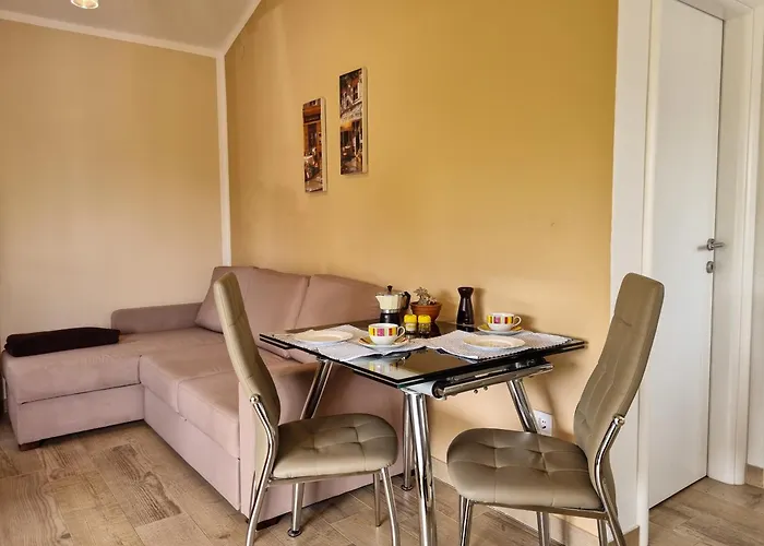Gelegen im Stadtviertel Brulo von Poreč gelegen, bietet die 35 m^2 große Ferienwohnung Juli No1 eine Terrasse mit Blick auf den Garten. Euphrasius-Basilika liegt etwa 15 Fußminuten vom Apartment entfernt und Contigo Fahrradverleih ist auch direkt nebenan.